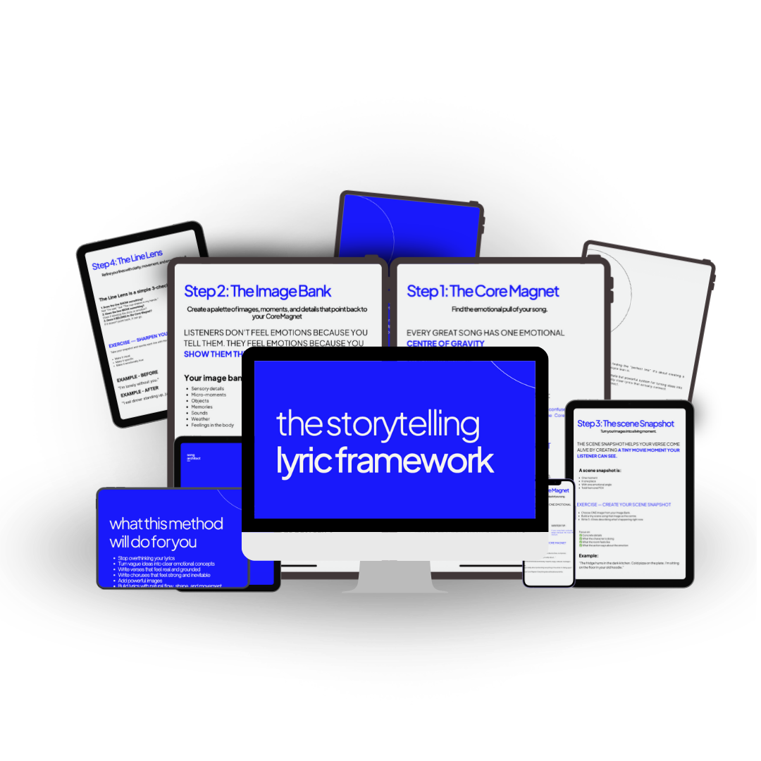 Turn vague ideas into vivid, cinematic lyrics. Use the Core Magnet for a strong emotional center, build an Image Bank of details, and apply the Scene Snapshot technique to create moments listeners can feel.